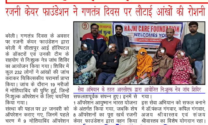 Bareilly, Uttar Pradesh: On the auspicious occasion of Republic Day, the Rajni Care Foundation, in a spirit of social s